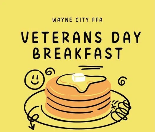 The Wayne City FFA chapter will honor area veterans with a special Veterans Day Breakfast on Tuesday, November 11th from 7:00 to 8:30 a.m. in the Ag Shop. Organizers invite all veterans, their families, and community supporters to attend.