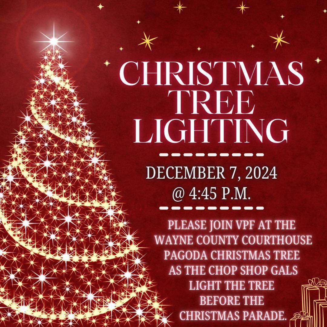 The lighting of the Christmas tree in downtown Fairfield at the pagoda on the Wayne County Courthouse square is set for Saturday at 4:45pm. Volunteers For A Progressive Fairfield invite the public downtown as the Chop Shop girls light the tree before the Christmas parade begins at 5pm.