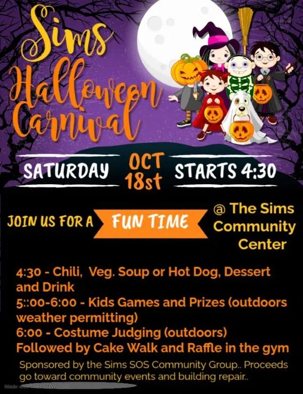 The Sims Community Center will be the place to be on Saturday, October 18th, as the annual Sims Halloween Carnival returns. The event kicks off at 4:30 PM and promises activities and treats for all ages.