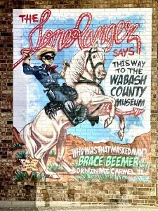 For its first painted mural, the Murals & Art team commissioned an artwork honoring Mount Carmel native Brace Beemer, the voice of the Lone Ranger radio program in the 1940s and early 1950s. Muralist Elias Reynolds, from eastern Kentucky, completed this mural on the side of the Wabash County Museum in early October.