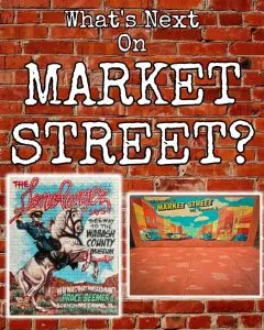 The Murals & Art team, the newest addition to Market Street MTC, is dedicated to the transformative power of art in the community. Their first commissioned project is a 7’ x 19’ banner depicting historic Market Street in the 1940s, created by artist Lisa Donohue. The banner is currently displayed on the old Ben Franklin Building, which is undergoing extensive renovations. Local high school art students also contributed by painting a sidewalk mural nearby, creating an immersive photo opportunity.