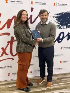 Illinois Extension, serving Edwards, Lawrence, Richland, Wabash, and Wayne counties, proudly congratulates Local Food Systems and Small Farms Educator Katie Bell for receiving the Individual Extension Excellence Award. Bell was honored at the Illinois Extension annual conference in Champaign for her outstanding contributions to the local food systems and small farms program.