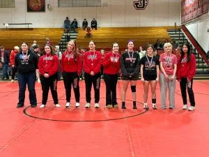 On Wednesday night, The Fairfield Mules and Lady Mules Wrestling teams were in action at the Black Diamond Conference Championship Meet at Johnston City. On the Boys side, the Mules lost to Johnston City 52-27. During the match Fairfield got Pinfall victories from Lane Witucki and Braxton Marshel and a 21-14 Decision victory from Jedd Wellen. The Mules also lost to Carmi 53-28. The Mules picked up Technical Fall victories from Carter Pool, 5-0, and Jedd Wellen, 21-4, while Vance Vanway and Grant Jennette both picked up Pinfall wins. Fairfield got the win over Goreville by a score of 65-11. The Mules picked up Pinfall victories from Jedd Wellen and Vance Vanway and a 16-0 Technical Fall win from Grant Jennette. On the Girls side, the Lady Mules defeated Johnston City 30-24. Addison Churchill picked up a Pinfall victory in the win.