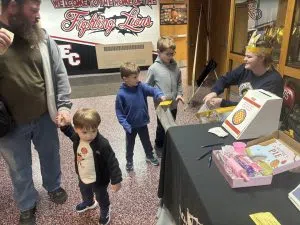 (Carlin St. Ledger surprises young attendees of Friday night’s game with an ag-themed goodie bag)