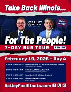 The “For The People!” tour is a cornerstone of Bailey’s grassroots effort to connect with voters and discuss the issues that matter most to Illinois residents. For more information, a full schedule of stops, or to follow the campaign, visit BaileyForIllinois.com.