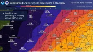 Temperatures are forecast to climb above normal from Wednesday through Saturday, providing a stretch of unseasonably warm weather. Light rain is expected to develop Wednesday night and continue into Thursday, offering some relief to the dry conditions.