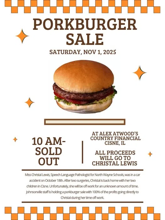 Johnsonville Elementary Grade School staff is organizing a porkburger sale to support Miss Christal Lewis, a Speech Language Pathologist for North Wayne Schools, who was recently involved in a car acc...