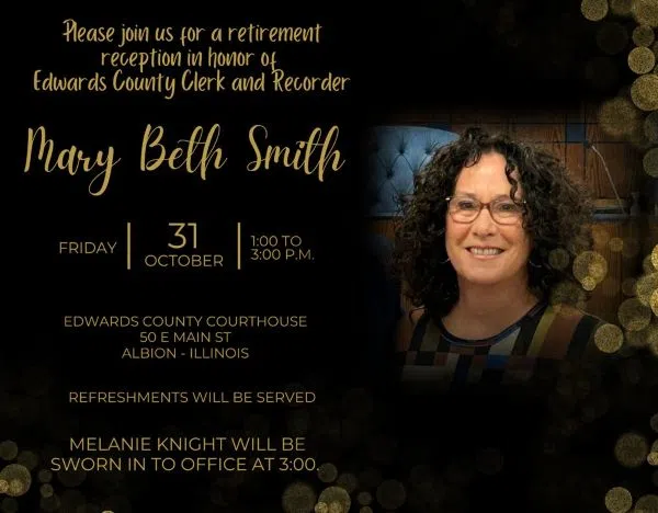 The Edwards County community is preparing to honor Mary Beth Smith, longtime County Clerk and Recorder, with a special retirement reception on Friday, October 31st. The event will take place at the Ed...