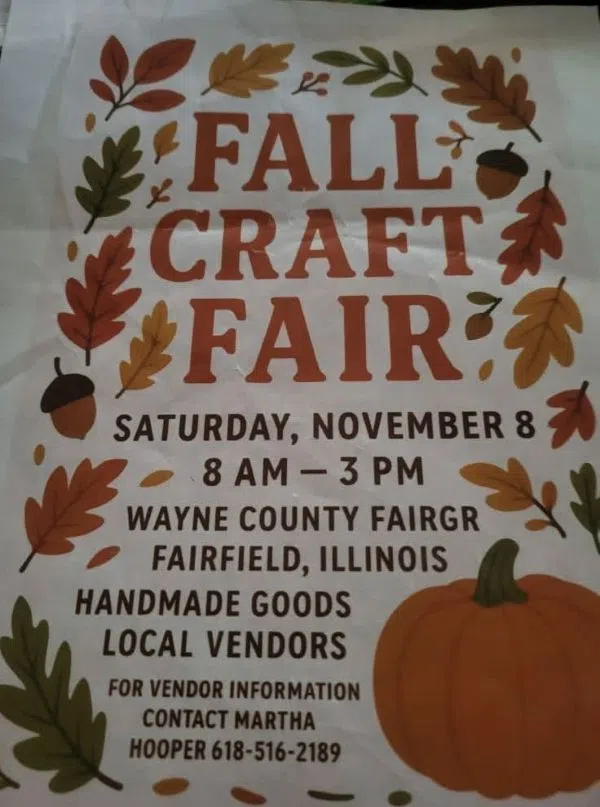 A fall craft fair will take place on Saturday, November 8th from 8 a.m. to 3 p.m. at the Wayne County Fairgrounds Floral Hall in Fairfield. The event will feature a wide variety of handmade goods from...