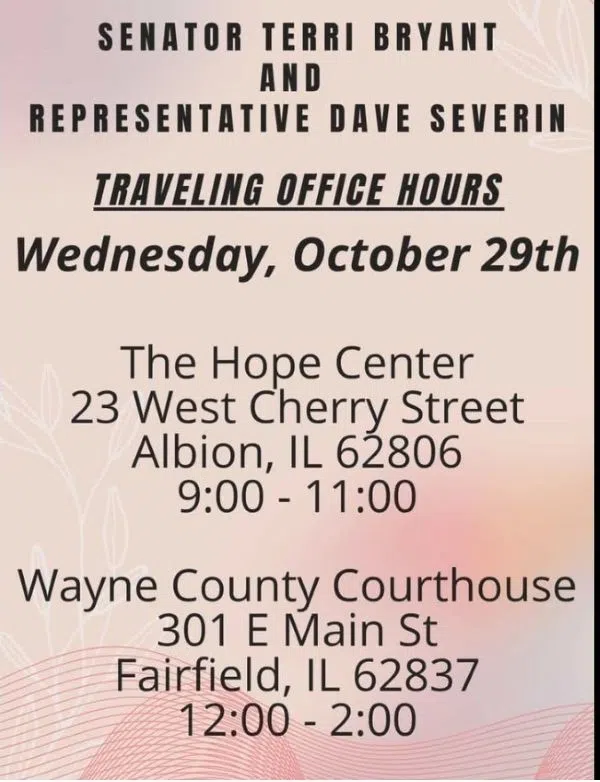 SENATOR TERRI BRYANT AND REPRESENTATIVE DAVE SEVERIN HOST TRAVELING OFFICE HOURS IN ALBION AND FAIRFIELD