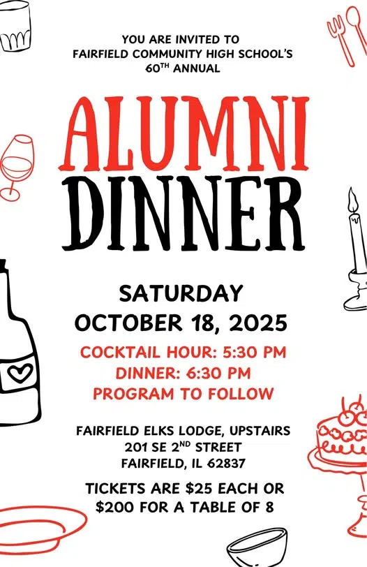 60TH FAIRFIELD COMMUNITY HIGH SCHOOL ALUMNI DINNER TO BE HELD OCTOBER 18TH