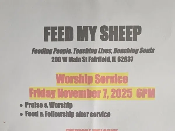 The "Feed My Sheep" ministry will host a special worship service on Friday, November 7th at 6:00 PM. at 200 West Main Street in Fairfield Those attending can look forward to an evening of praise and worship, followed by food and fellowship after the service. The featured speaker for the event will be Brother ...