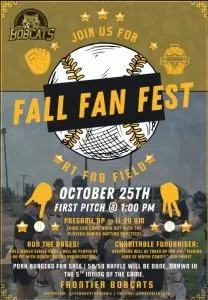 Frontier Community College Baseball will host its Fall Fan Fest today (Saturday) at FNB Field in Fairfield. The event offers fun for all ages and a great way for fans to connect with the Bobcats while supporting a good cause. Kids are invited to join players on the field during warmups.and the Fall World Series Game 1...